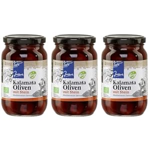 Griechische Oliven Kalamata mit Stein 3x 210g | Bio Zertifiziert | Oliven aus Griechenland | Jassas | GR-BIO-15